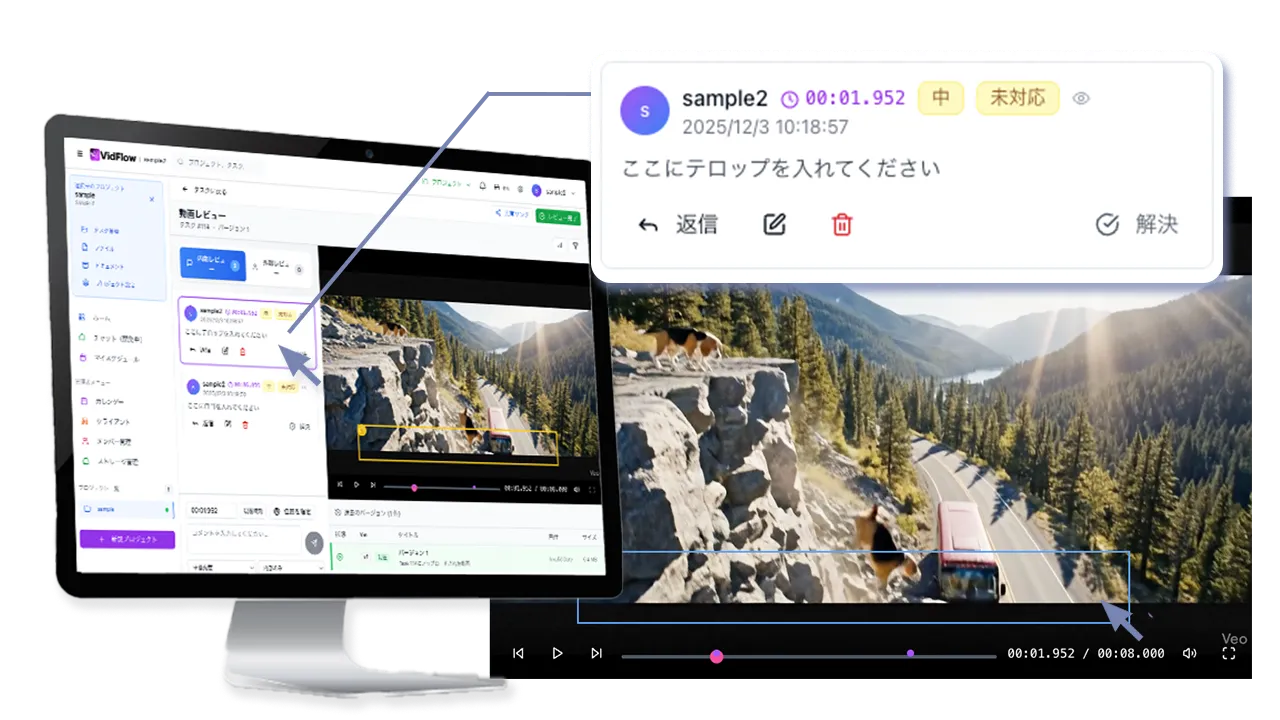 動画に直接コメントできるので修正指示を明確に伝達可能。